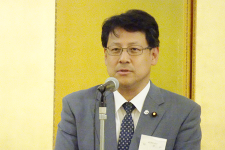 壇上でスピーチを行う当協会の久積副会長