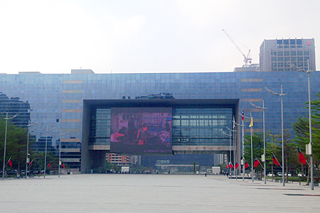 近代的な台中市政府の正面。入口の上には巨大なLEDビジョンが設置されている