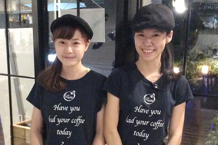 「カフェマルシェ」従業員の宇虔さんと宸君さん。共に大学生だ。台中出身の彼女達は日本語も理解できるという。