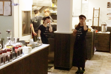 つかの間一息つく「カフェマルシェ」従業員の皆さん。全員が若く生き生きした対応に好感が持てる。