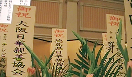 当協会からは青年部長ら有志が出席。台北駐大阪経済文化弁事処の蔡明耀処長様に祝賀の意を伝えました。祝賀会には数多くの日台関係者が駆けつけ、熱気に包まれた会場は、日台の友好親善で盛り上がりました。